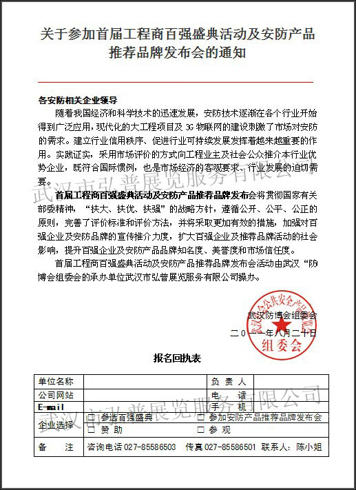 關(guān)于參加首屆工程商百?gòu)?qiáng)盛典活動(dòng)及安防產(chǎn)品推薦品牌發(fā)布會(huì)的通知