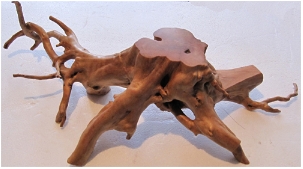 根據(jù)我們的實踐體會,一個完美的花架,應(yīng)該體現(xiàn)“四個字”,即“大、小、多、少”。大:即面子要大,易于擺放飾品;“小”即根雕一般都有節(jié)疤,有節(jié)疤是好事,顯得蒼勁,但節(jié)疤要小,過大影響整體形象;“多”即“腳”要多,既有平穩(wěn)感,又有藝術(shù)美感;“少”指“手”要少,上面“手”太多,既影響美感,又影響飾品擺放。
