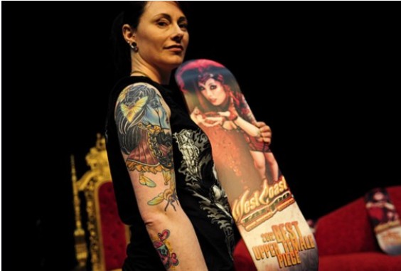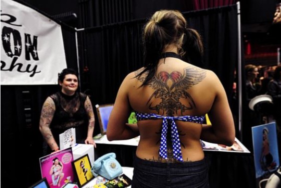 2012年4月29日,溫哥華舉行西海岸紋身藝術(shù)展,來(lái)自北美各地的幾百名紋身師將最新最勁爆的紋身技藝和西海岸風(fēng)格刺青作品展現(xiàn)在眾人面前。(來(lái)源:環(huán)球網(wǎng))