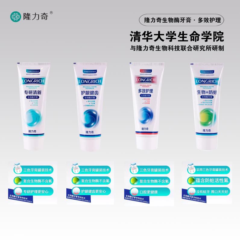 據(jù)了解,北京大學(xué)口腔醫(yī)院對(duì)隆力奇含葡聚糖酶牙膏做了檢測(cè),檢測(cè)報(bào)告顯示隆力奇生物酶牙膏可以明顯減少變形鏈球菌的數(shù)量。葡聚糖酶能夠降解口腔細(xì)菌形成的粘性多糖物質(zhì),消除細(xì)菌賴以生存的條件,抑制細(xì)菌黏附于牙齒的牙釉質(zhì)表面,達(dá)到防治齲齒的目的。隆力奇生物酶牙膏采用專利技術(shù)和三色牙膏灌裝技術(shù),有效保護(hù)生物酶,避免牙膏中的其他原料對(duì)生物酶的破壞作用,確保產(chǎn)品保質(zhì)期內(nèi)生物酶活性符合企業(yè)標(biāo)準(zhǔn)。