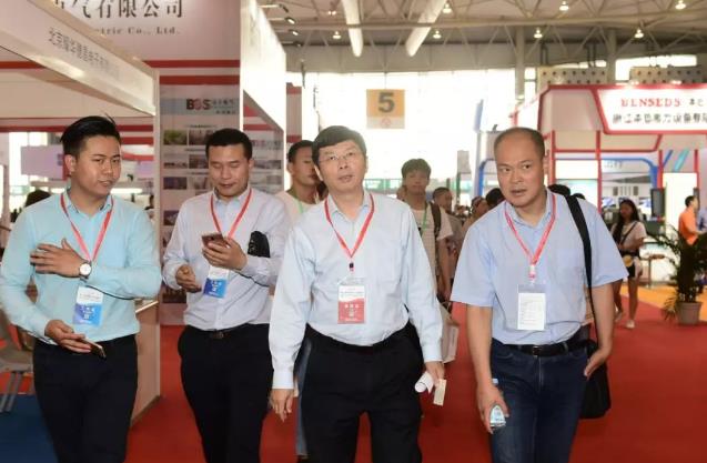 5月4日上午,四川省電力行業(yè)協(xié)會(huì)常務(wù)副理事長(zhǎng)石俊杰(前排右二)在四川省電力行業(yè)協(xié)會(huì)常務(wù)副秘書(shū)長(zhǎng)文曹(前排右一)、成都振威世展展覽有限公司總經(jīng)理張學(xué)輝(前排右三)等陪同下,視察指導(dǎo)展會(huì)