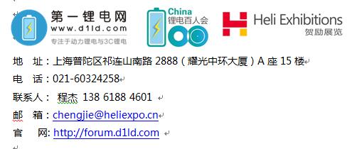 報(bào)名資料:展會官網(wǎng),第一鋰電網(wǎng)在線提交資料或郵件提供營業(yè)執(zhí)照復(fù)印件及LOGO尺寸:220*120