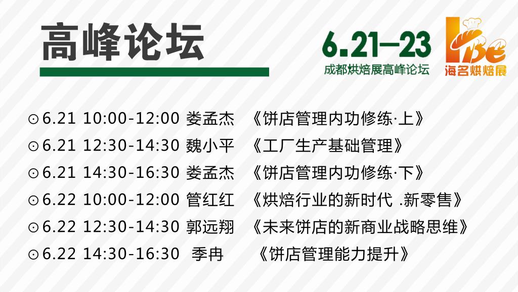 2018年第十三屆成都烘焙展急你所急,想你所想。6月21-23日成都世紀(jì)城新國際會展中心,主題烘焙論壇專為烘焙從業(yè)者量身打造,烘焙行業(yè)問題全解讀,提前預(yù)約就可獲取現(xiàn)場免費席位。在第十三屆成都烘焙展的現(xiàn)場,來自烘焙先鋒的行業(yè)金牌導(dǎo)師郭遠翔、管紅紅在現(xiàn)場針對餅店發(fā)展,業(yè)績提升為您解答。更有來自博尊烘焙的行業(yè)大咖導(dǎo)師婁孟杰老師、駐店指導(dǎo)老師季冉老師、生產(chǎn)管理老師魏小平老師都會齊聚,在現(xiàn)場可以就公司發(fā)展、門店管理、生產(chǎn)管理等各方面為您一站式解答。