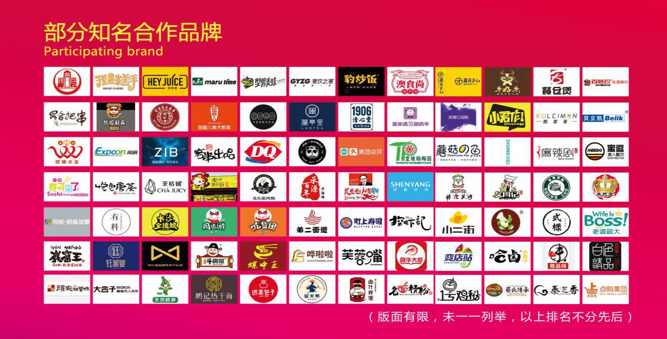 本屆參會(huì)企業(yè)涉及:餐飲食品、商品零售、服裝服飾、教育培訓(xùn)、嬰童用品、保健美容、商業(yè)服務(wù)、漁業(yè)水產(chǎn)等八大板塊?;饘m殿、我是糕手、白色精品、麥如披薩、斗腐倌、思益味、烤骨精、源源烤雞、型男美蛙、澳食尚煲仔飯、鈺湘宴、巖窟王北海道拉面、茶桔便、港飲之港、同仁堂等近200個(gè)連鎖加盟品牌入駐。11月23-25日,等你加入這場(chǎng)年終加盟創(chuàng)業(yè)投資盛典,圓老板夢(mèng)想,成為自我人生的價(jià)值主宰。
