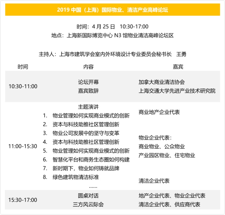 2019中國(上海)國際物業(yè)、清潔產(chǎn)業(yè)高峰論壇