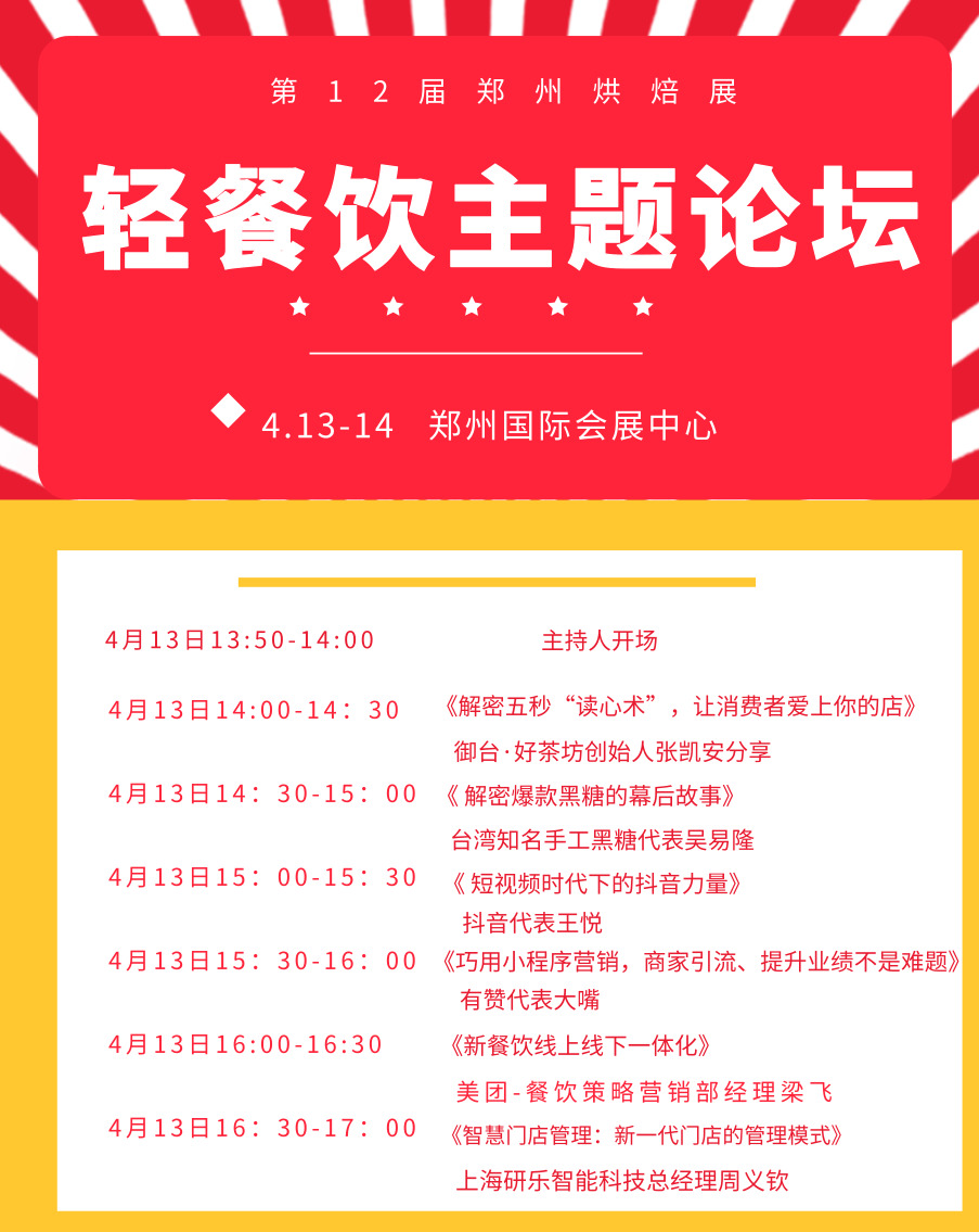 4月13日-14日鄭州烘焙展同期活動(dòng)搶先看