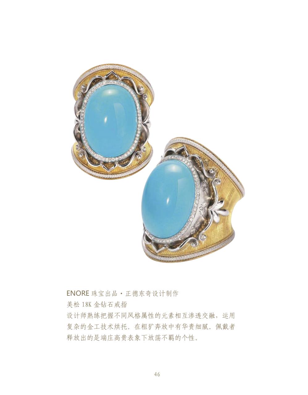 富有創(chuàng)作靈感的珠寶設(shè)計(jì)師都以獨(dú)特的個(gè)人風(fēng)格和方法去表達(dá)首飾創(chuàng)作,對(duì)于他們來(lái)說(shuō),珠寶首飾的演繹猶如一片黃金瀚海與寶石所組合的景致。設(shè)計(jì)師追求嶄新造型和精典創(chuàng)作概念,杰出的工匠致力克服一切工藝上的障礙,不論是復(fù)雜的結(jié)構(gòu)和金表面的特殊處理效果,或是寶石鑲嵌的精密程度,都精心計(jì)算。設(shè)計(jì)與工藝的完美結(jié)合,制作出與時(shí)俱進(jìn)的珠寶首飾藝術(shù)品。