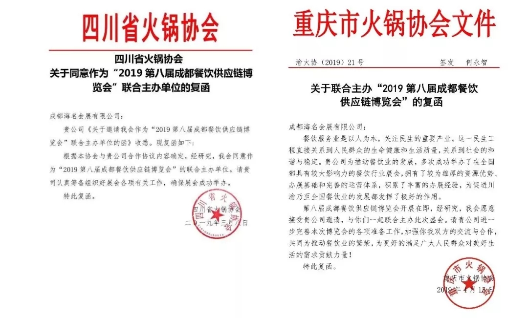 【四川省火鍋協(xié)會、重慶市火鍋協(xié)會 復(fù)函】