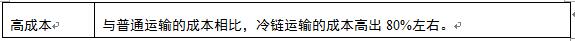 高成本 與普通運(yùn)輸?shù)某杀鞠啾?,冷鏈運(yùn)輸?shù)某杀靖叱?0%左右。