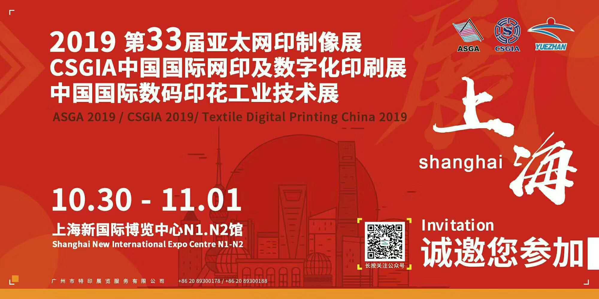 2019年亞太網(wǎng)印制像展、CSGIA 中國(guó)國(guó)際網(wǎng)印及數(shù)字化印刷展兩大品牌聯(lián)手將于2019年10月30日-11月1日在上海浦東新國(guó)際博覽中心給大家呈現(xiàn)絲網(wǎng)印刷、紡織品印花、數(shù)碼印花與廣告標(biāo)識(shí)完美融合的主題盛會(huì)。屆時(shí),我們將推出第10屆亞太精品評(píng)比和第19屆金網(wǎng)獎(jiǎng)精品評(píng)比,真誠(chéng)歡迎行業(yè)內(nèi)網(wǎng)印數(shù)碼印刷企業(yè)的積極參與。