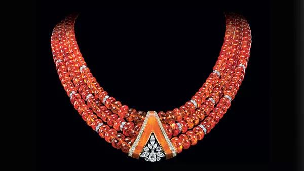 芬達(dá)石的致色元素是鐵和錳,決定它能夠呈現(xiàn)出猶如芬達(dá)般純凈鮮艷而又明亮的橙色,使得它在歐美市場受到熱烈歡迎。不少知名的珠寶品牌,如今都開始采用優(yōu)質(zhì)的芬達(dá)石作為創(chuàng)作靈感,設(shè)計(jì)了一系列夢幻的珠寶作品。