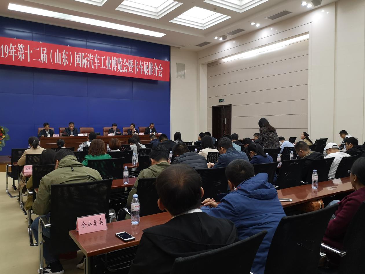 10月15日,2019第十二屆(山東)國際汽車工業(yè)博覽會(huì)暨卡車展推介會(huì)在濟(jì)南龍奧大廈舉行,會(huì)議由濟(jì)南市貿(mào)促會(huì)會(huì)長翟旭東主持,濟(jì)南市政府副秘書長楊永斌、山東省市汽車行業(yè)協(xié)會(huì)常務(wù)副會(huì)長魏學(xué)勤、濟(jì)南市商務(wù)局副局長王志剛、濟(jì)南市貿(mào)促會(huì)巡視員張靜應(yīng)邀出席,濟(jì)南市會(huì)展辦、山東國際會(huì)展中心等省市相關(guān)部門領(lǐng)導(dǎo)也參加本次推介會(huì)。全國主要汽車生產(chǎn)和銷售企業(yè)代表、省市媒體記者近100人,見證了本次推介會(huì)的舉行。