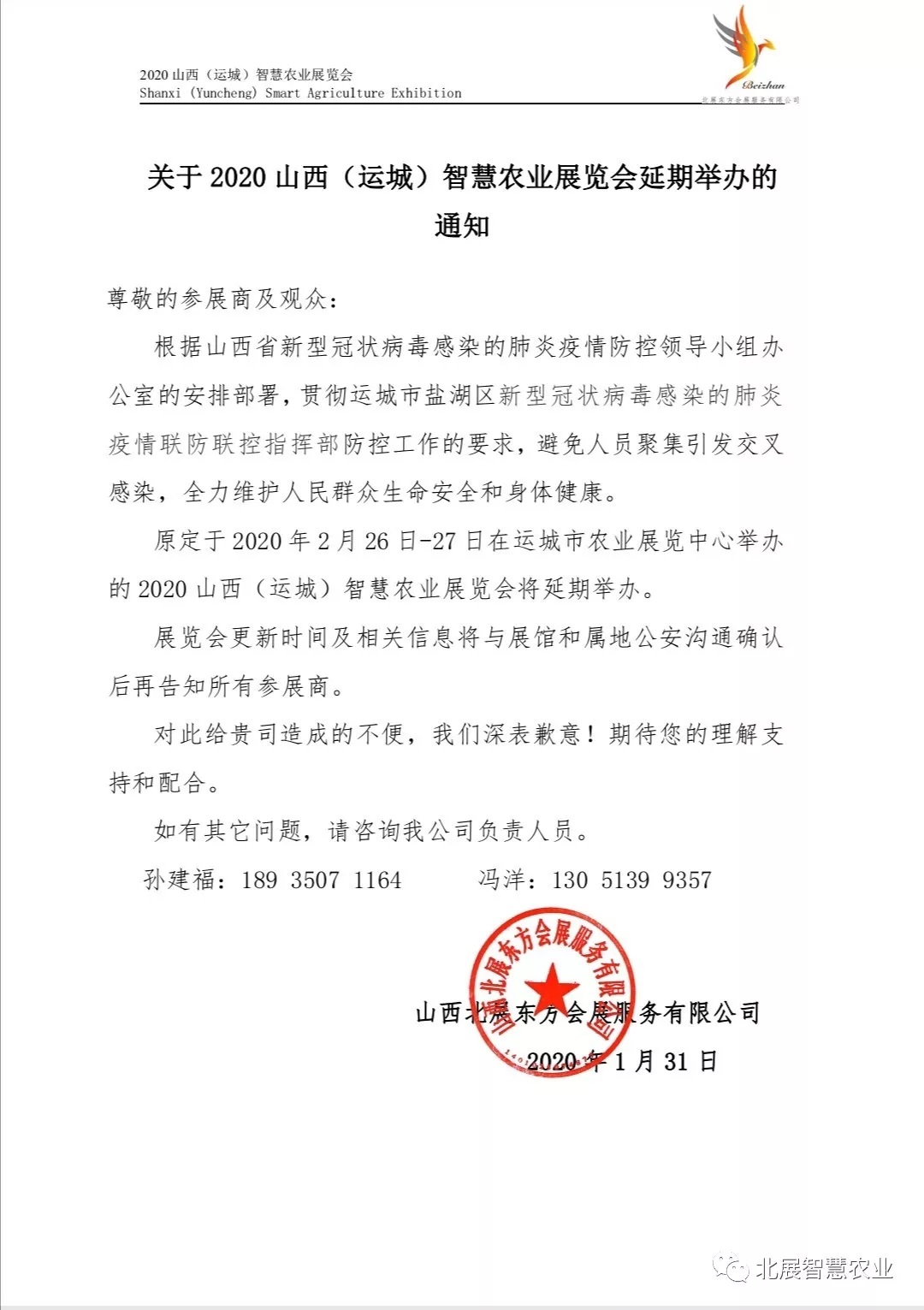 關(guān)于2020山西(運(yùn)城)智慧農(nóng)業(yè)展覽會(huì)延期的通知