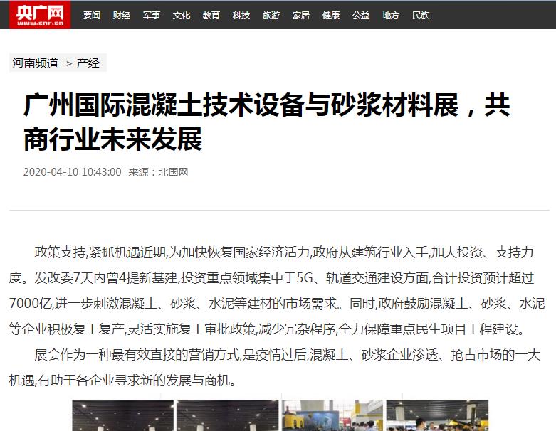 近百家知名媒體紛紛報道2020廣州國際混凝土與砂漿展