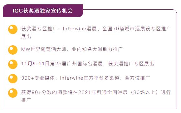 Interwine是中國最早、影響力最大的專業(yè)國際葡萄酒及烈酒展覽,旗下Interwine 葡萄酒與烈酒大獎賽(簡稱IGC)作為中國最權(quán)威公正的葡萄酒大賽之一,對中國葡萄酒消費市場影響深遠。IGC旨在對釀酒廠商勤懇勞作進行表彰加冕,全力幫助進入中國市場的國內(nèi)外酒商建立起自己的品牌知名度和美譽度,搭建釀酒者和消費者之間的互聯(lián)互通的橋梁,推動國際和國內(nèi)葡萄酒行業(yè)向前發(fā)展。2020 IGC已正式啟動,參賽酒款現(xiàn)正征集中。
