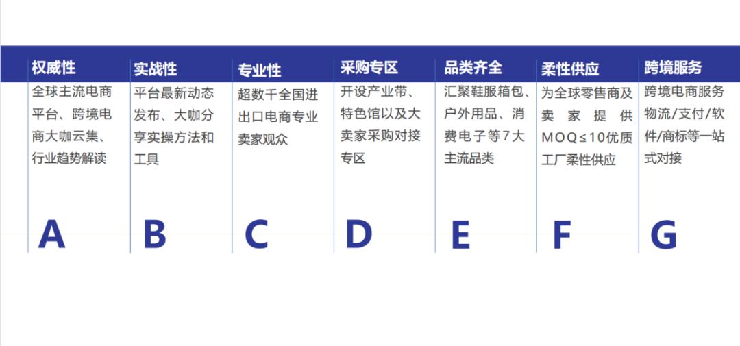 B2B/B2C 跨境電商平臺、海內(nèi)外零售電商、跨境電商產(chǎn)業(yè)園區(qū) / 綜試區(qū)、招商政策/項(xiàng)目推薦、投資環(huán)境展示、直播平臺 / 設(shè)備 / 配套部件、大數(shù)據(jù)、人工智能和云計(jì)算、跨境電商協(xié)會、獨(dú)立站、專業(yè)媒體等