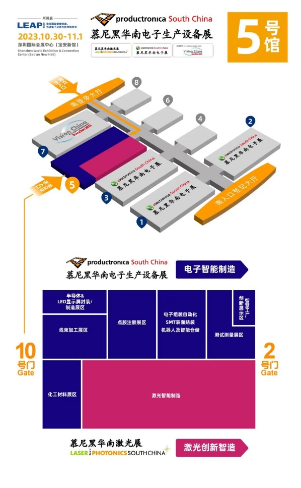 10月30日-11月1日,2023慕尼黑華南電子生產(chǎn)設(shè)備展將與慕尼黑華南電子展、慕尼黑華南激光展和中國(guó)(深圳)機(jī)器視覺(jué)展暨機(jī)器視覺(jué)技術(shù)及工業(yè)應(yīng)用研討會(huì)多展聯(lián)動(dòng),同期打造行業(yè)盛會(huì)LEAP Expo 2023。