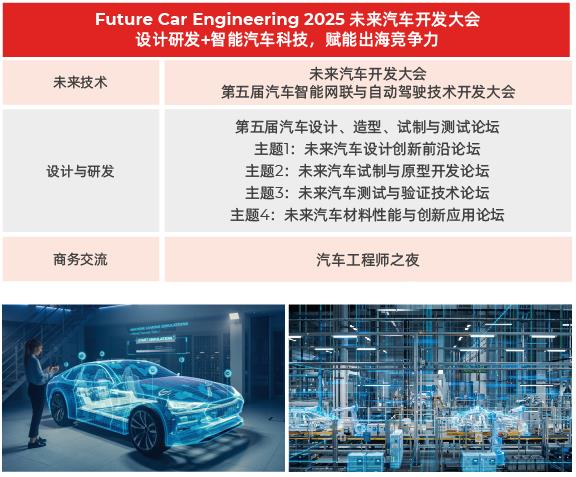 Future Car Engineering 2025未來汽車開發(fā)大會將聚焦智能網(wǎng)聯(lián)與自動駕駛技術(shù)、汽車設(shè)計、造型、試制與測試等核心的前沿技術(shù)與解決方案,匯聚全球汽車設(shè)計研發(fā)領(lǐng)域的精英,打造一場技術(shù)、生態(tài)、商業(yè)深度融合的國際盛會,預(yù)計將吸引1,000名中國及500名來自