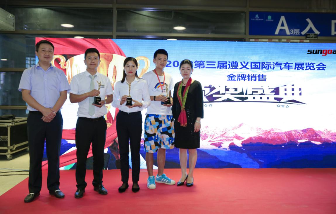 經(jīng)過20天的激烈角逐,首屆遵義國際車展“金牌銷代”冠、亞、季軍已經(jīng)誕生。來自上汽通用五菱遵義良駒汽車貿(mào)易集團(tuán)有限公司銷售代表蔣斌鑫以56140票摘得冠軍殊榮;來自遵義寶源汽車銷售服務(wù)有限公司寶馬品牌銷售代表馮小利以52513票獲得本次活動(dòng)亞軍;遵義眾鑫匯汽車銷售服務(wù)有限公司斯柯達(dá)品牌銷售代表吳可松以27030票獲得季軍。今天下午2點(diǎn),金牌銷售代表頒獎(jiǎng)盛典準(zhǔn)時(shí)在B館2層尚格大舞臺舉行,尚格會展股份有限公司總經(jīng)理任麗紅女士、貴陽尚格會展服務(wù)有限公司總經(jīng)理李楊先生分別為獲獎(jiǎng)的“金牌銷代”們頒獎(jiǎng),現(xiàn)場觀眾們共同見證了這一榮耀時(shí)刻。