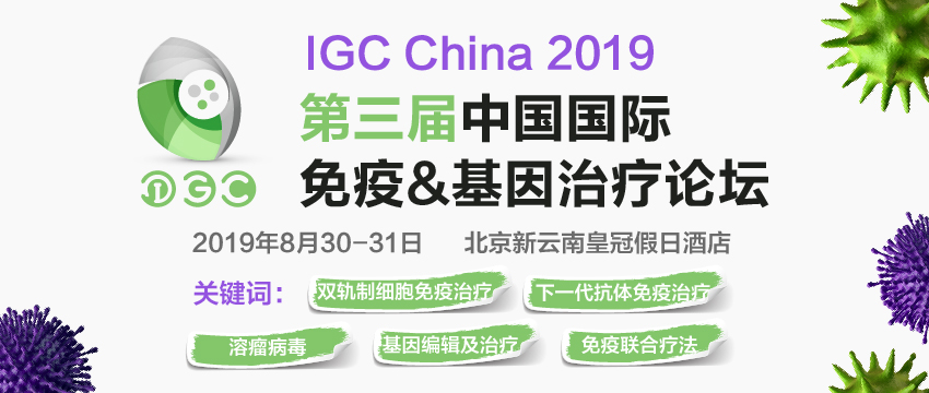 2019年8月30-31日,由中國生物工程學(xué)會與商圖信息聯(lián)合主辦,美國華人生物制藥科技協(xié)會(CBA特別支持,一年一度的IGC China 2019第三屆中國國際免疫&基因治療論壇將于北京新云南皇冠假日酒店隆重召開!)